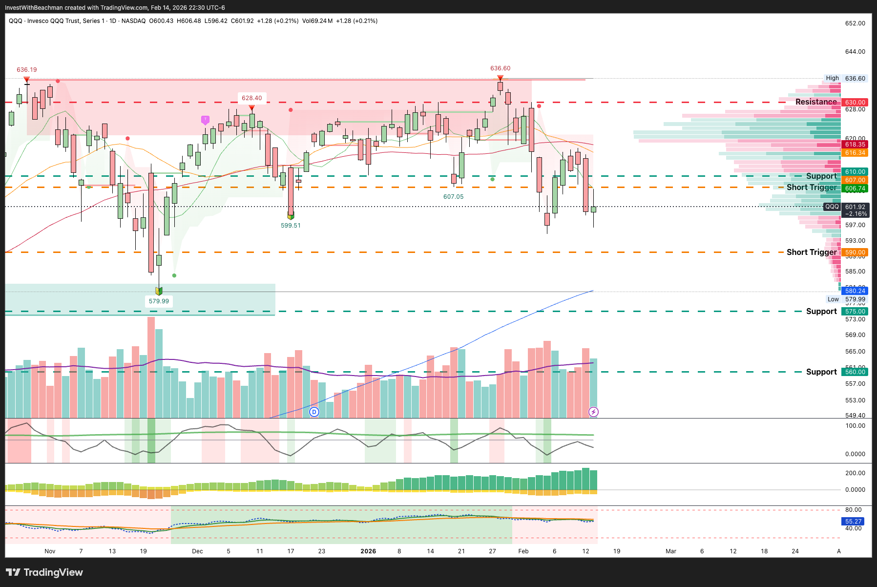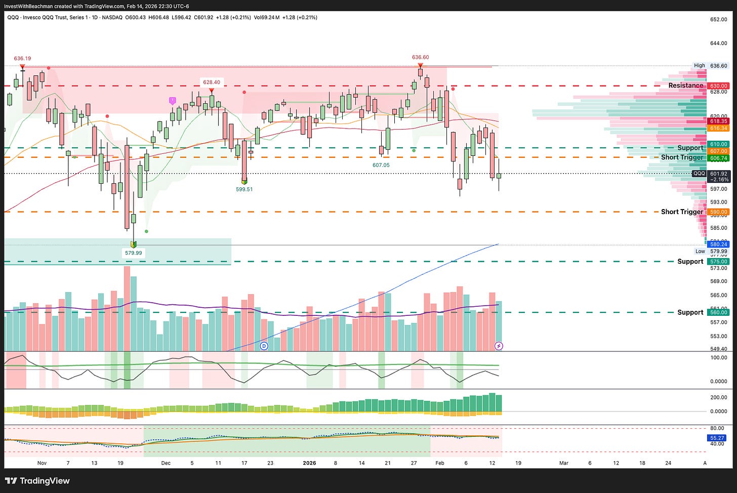 The Nasdaq double topped at the $636 mark and has been living comfortably under the all important 50DMA for two weeks.